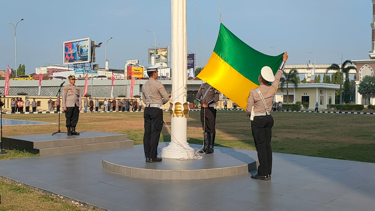 Bertindak sebagai Inspektur Upacara Kompol Ikhsan Nasrul, SH, MH,dengan Perwira Upacara Kabag Faskon Rolog Polda Sumsel AKBP Efranedy, SIK