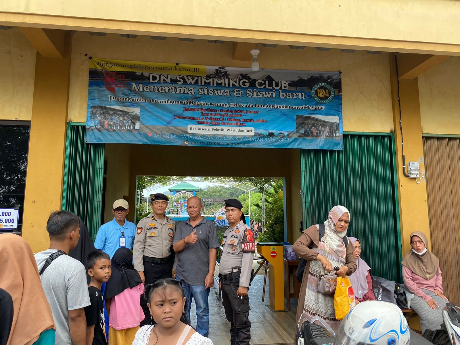 Tim Preventif Ops Ketupat Lodaya 2024 dari Polres Majalengka gencar melakukan pemantauan dan memberikan imbauan kepada pengelola dan pengunjung Kolam Renang DN WaterPlay Rajagaluh, Kecamatan Rajagaluh, Kabupaten Majalengka, dalam rangka menjaga harkamtibmas (Pemeliharaan Keamanan Ketertiban Masyarakat) selama libur Lebaran. Minggu (14/4/2024).