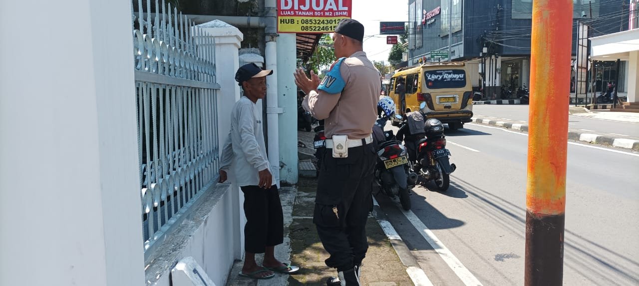 Bripka Dadan Herdiana, seorang Polisi RW dari Polsek Majalengka Kota, Polres Majalengka Polda Jabar, melaksanakan patroli dialogis dan menyambangi warga di Jalan KH Abdul Halim, Majalengka, pada Senin (1/4/2024).