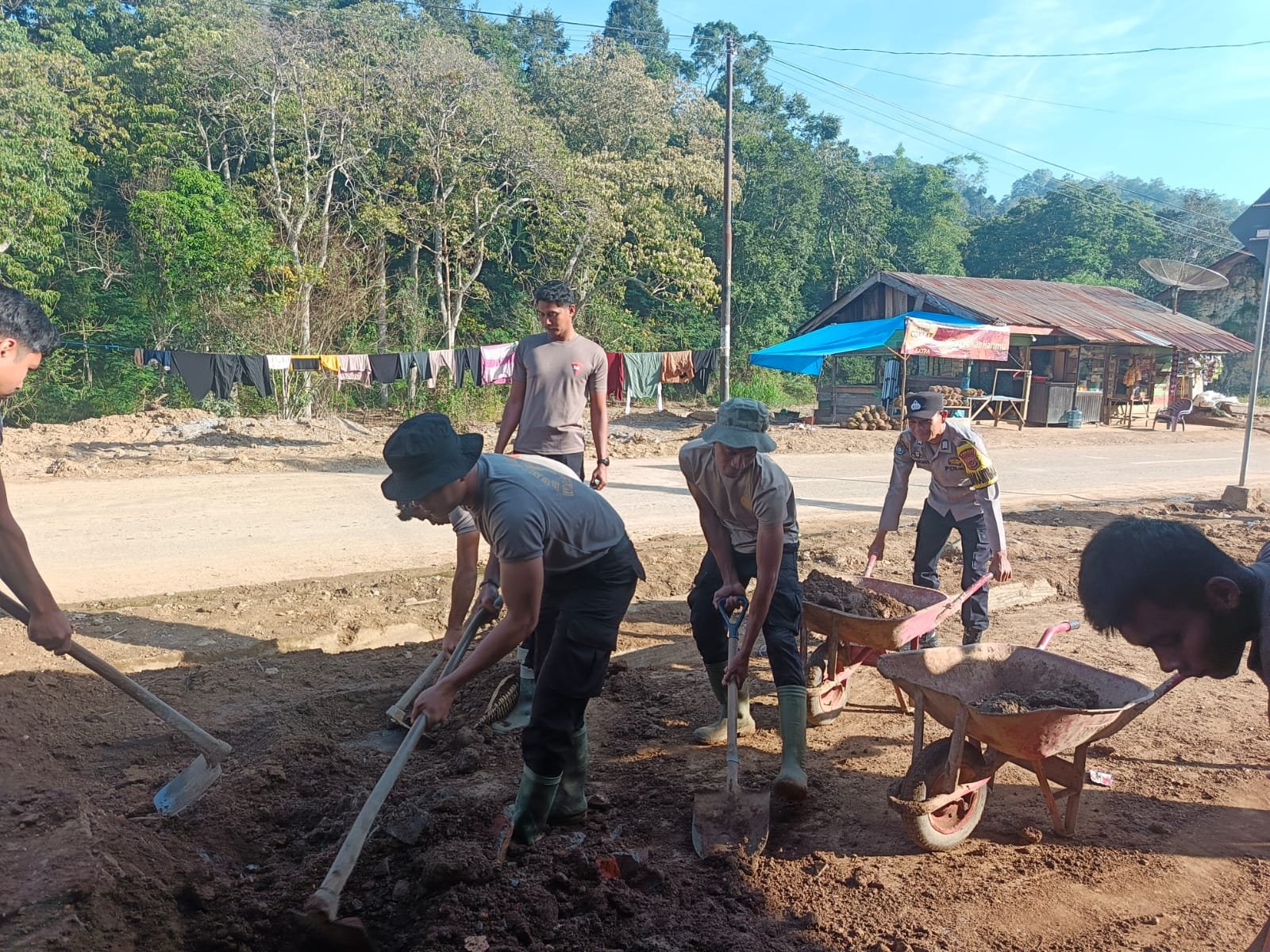 Sebanyak 20 personel gabungan dari Polsubsektor Rusip Antara dan BKO Brimob Polda Aceh turun langsung ke lokasi, bahu membahu bersama masyarakat setempat membersihkan sisa material lumpur dan tanah di dalam maupun di sekitar rumah warga.