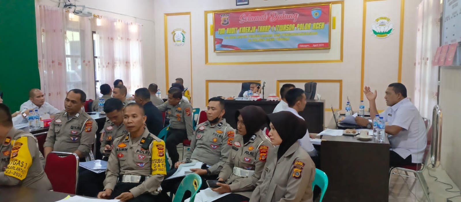 Kegiatan audit kinerja tahap I T.A 2024 Itwasda Polda Aceh bertempat di Aula Kamtibmas Polres Aceh Tengah, Senin 29 April 2024.