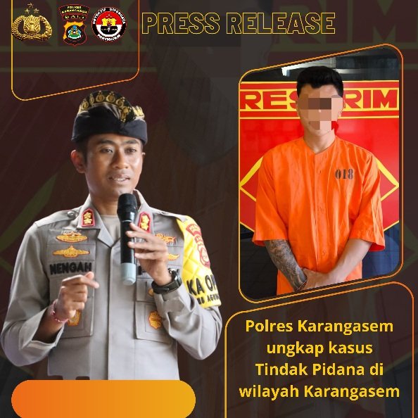 Kapolres Karangasem, AKBP I Nengah Sadiarta, S.I.K., S.H., M.K.P., menggelar konferensi pers terkait pengungkapan kasus penganiayaan yang terjadi di Kecamatan Kubu, Kabupaten Karangasem. Kasus yang bermula dari dendam lama ini berhasil diungkap berkat kerja cepat tim Polsek Kubu.