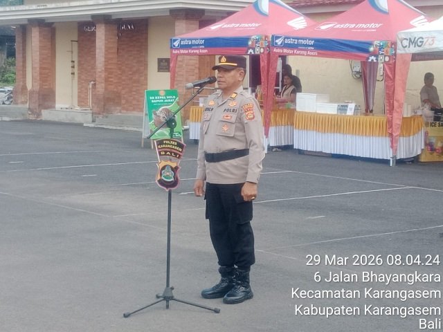 Dalam upaya mengantisipasi potensi gangguan kamtibmas di kawasan wisata, Polres Karangasem melaksanakan apel Kegiatan Rutin Yang Ditingkatkan (KRYD). Pada Minggu, (29/3/2026).