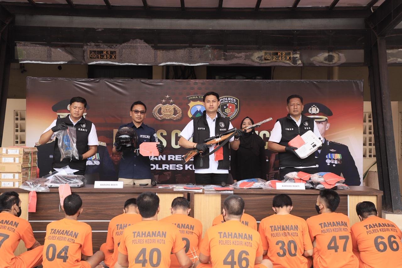 Dalam operasi tersebut, Satuan Reserse Kriminal (Satreskrim) Polres Kediri Kota Polda Jatim mengamankan Sembilan tersangka dari beberapa kasus kejahatan.