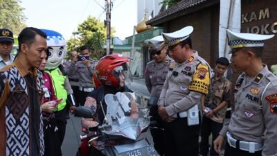 Satlantas Polres Kendal Sosialisasi Operasi Patuh Candi 2024 bagi Brosur dan Helm Gratis