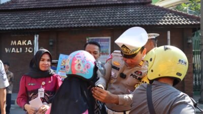 “Untuk kegiatan hari ini memberikan imbauan kepada masyarakat dan pembagian helm kepada pengendara yang tidak mengenakan helm,” katanya,