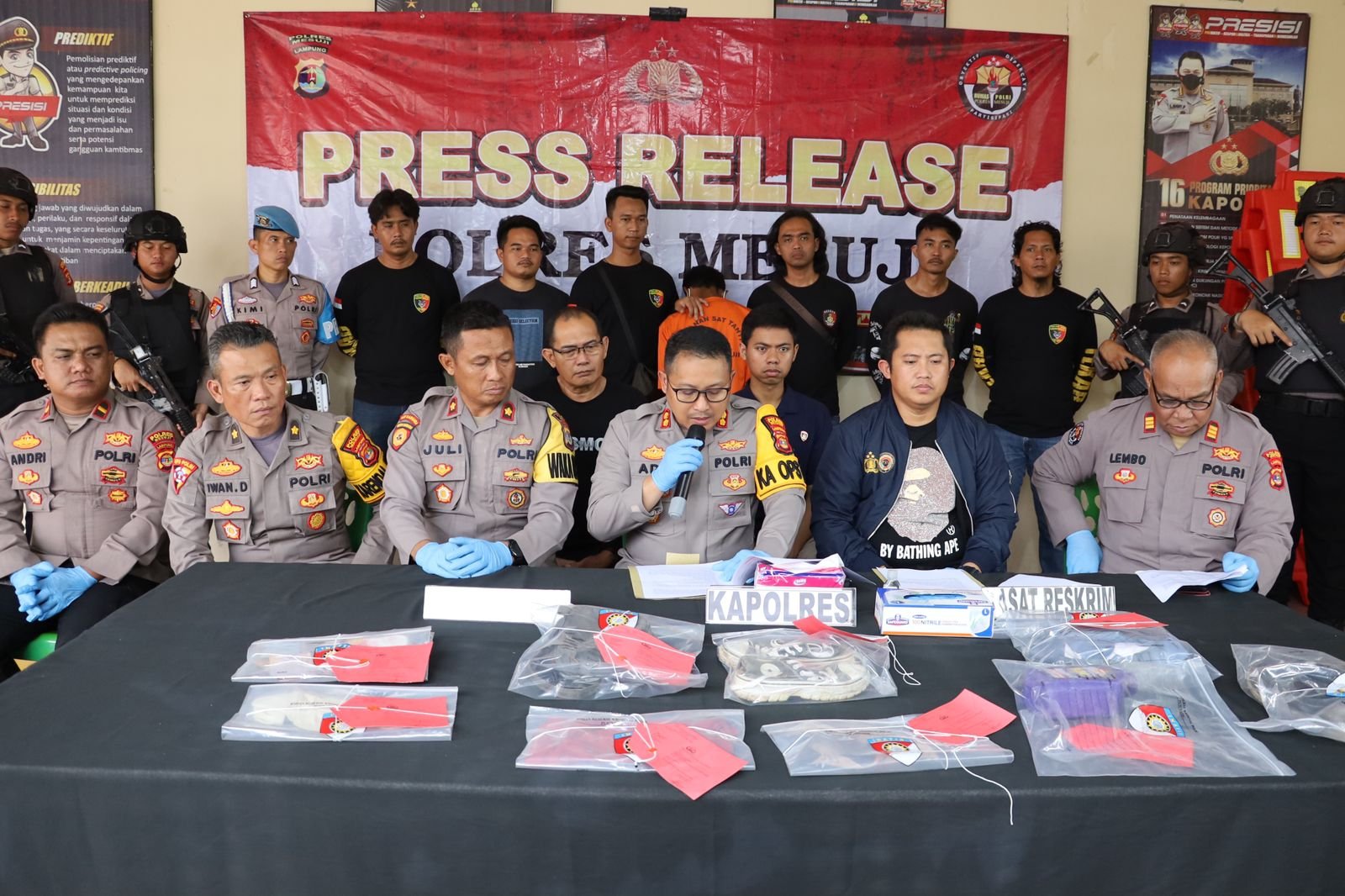 Polres Mesuji menggelar Press Release terkait Penangkapan Pelaku Pembunuhan Siswi SMKN 1 Tanjung Raya, Kabupaten Mesuji. Kamis (03/07/24)