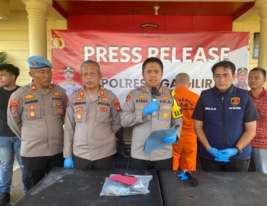 Rilis dipimpin langsung Kapolres Ogan Ilir, AKBP Bagus Suryo Wibowo, didampingi Kasat Reskrim AKP Muhklis, Kasi Propam, Kabag Ops, Kasi Humas Polres Ogan Ilir.
