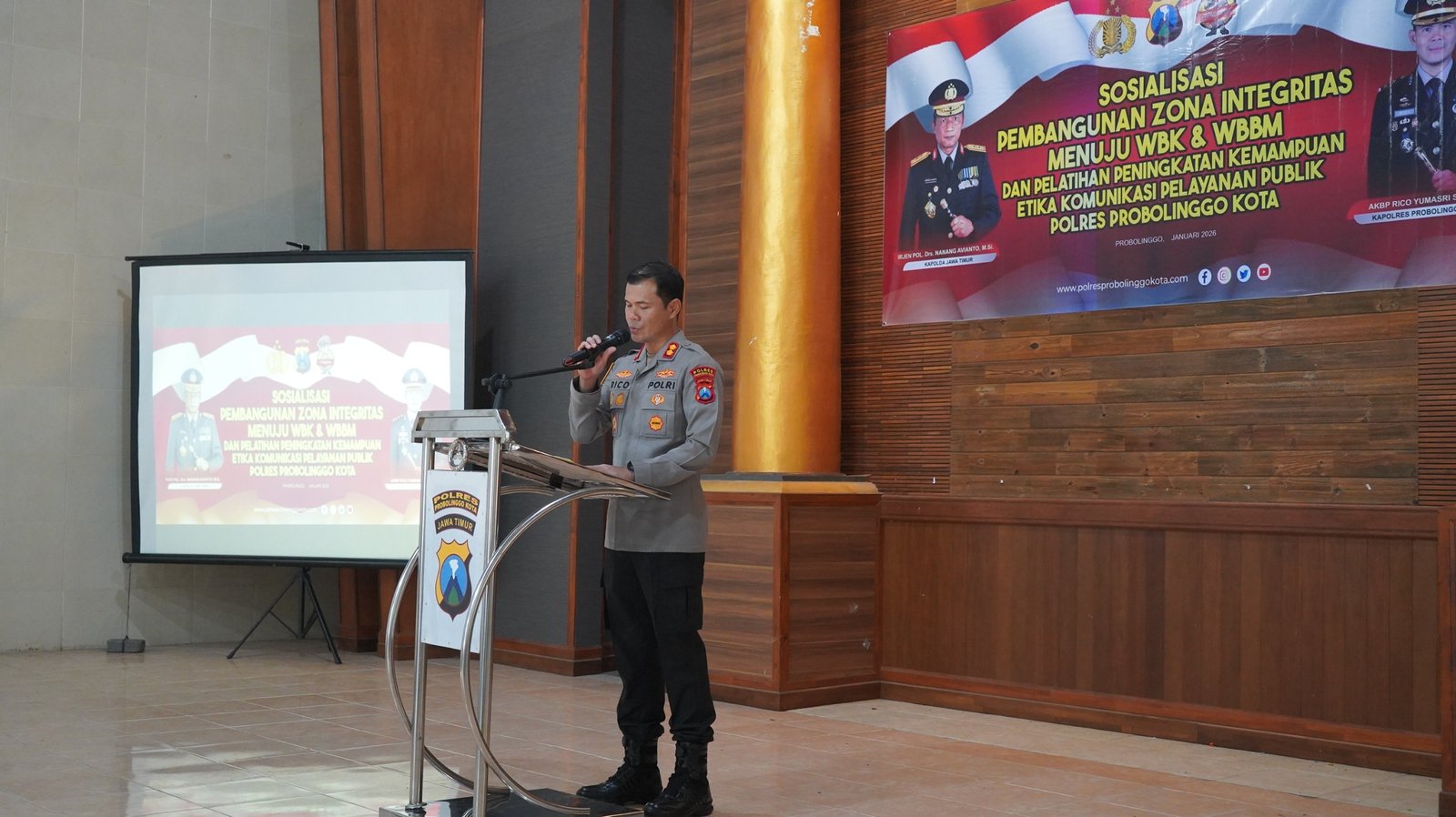 Probolinggo ll detikperistiwa.co.id ll 14 Januari 2026 – Polres Probolinggo Kota menggelar sosialisasi pembangunan Zona Integritas (ZI) sebagai upaya mewujudkan Wilayah Birokrasi Bersih dan Melayani (WBBM). Kegiatan tersebut digelar di Graha Prabu Mapolres Probolinggo Kota.