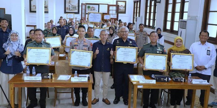 Piagam penghargaan diserahkan saat Penganugerahan Satker Berkinerja Terbaik Triwulan III Tahun 2025 digelar Kantor Pelayanan Perbendaharaan Negara (KPPN) Malang di Aula RCE Center Gedung Cagar Budaya Jl Merdeka Selatan Kota Malang, Rabu (5/11).