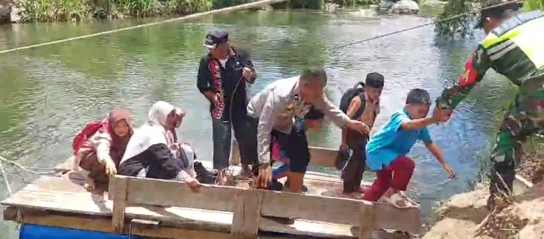 Sebagai wujud hadirnya Polri di tengah masyarakat, Polsubsektor Rusip Antara Polres Aceh Tengah turun langsung membantu anak sekolah dan warga menyeberang sungai menggunakan rakit, Kamis (11/9/2025).