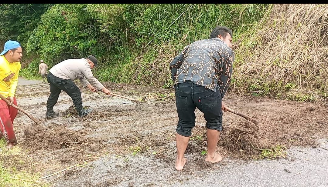 Kegiatan ini dilakukan sebagai bentuk respon cepat terhadap gangguan akses jalan akibat material longsor yang menutup sebagian badan jalan. Dengan kerja sama antara aparat kepolisian dan masyarakat, jalan kini telah dapat digunakan kembali secara normal.