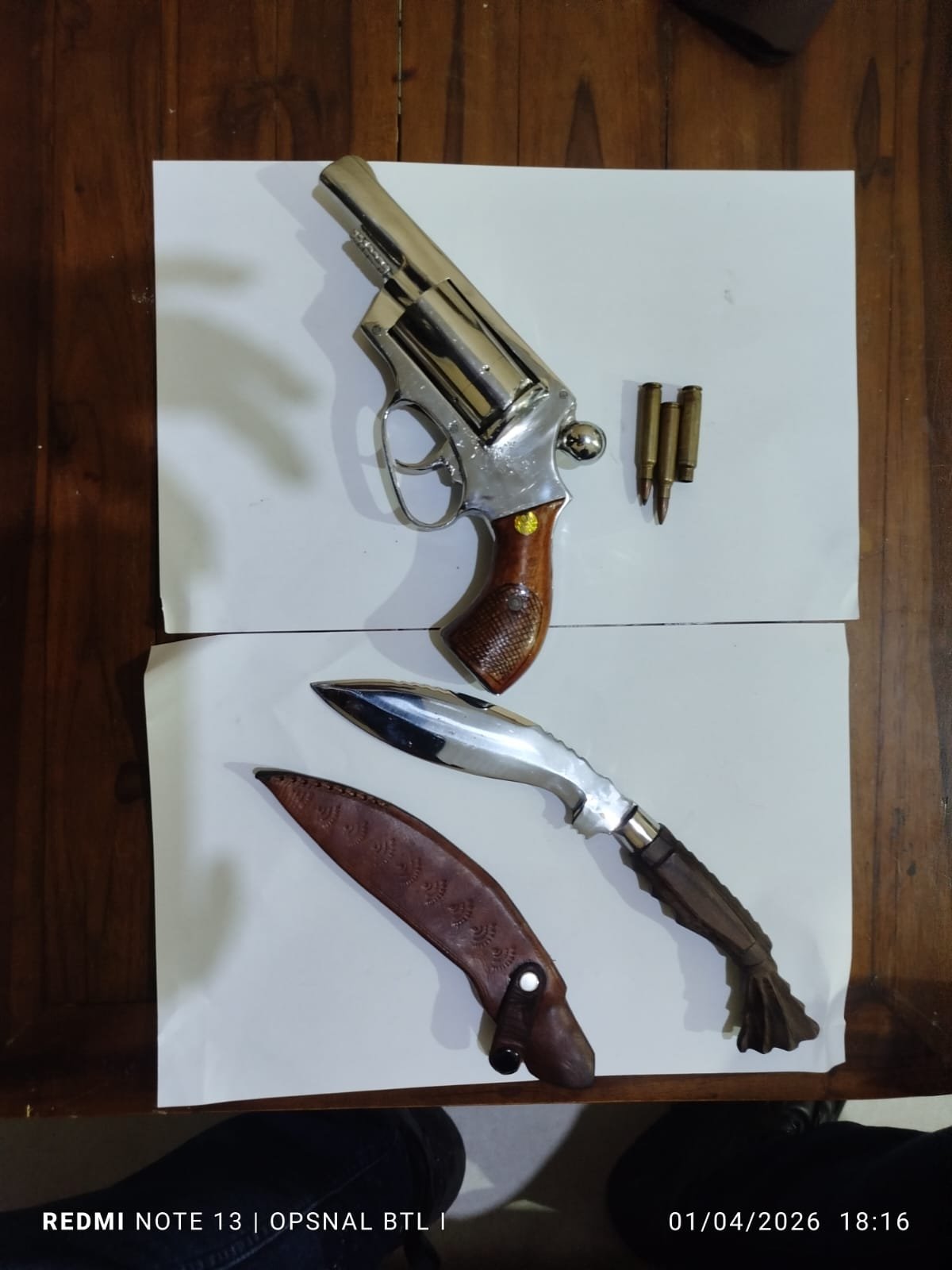 “Ujarnya yang juga menyampaikan kronologis kejadian, penangkapan kedua tersangka berawal pada Hari Rabu Tanggal, 01 April 2026, sekira pukul, 17.30 wib, pada saat itu Kanit Reskrim polsek Belitang I, Ipda Krisna Sandi bersama dengan Anggota unit Reskrim sedang melakukan giat Hitung Antisipasi kejahatan. Kemudian saat melintas di Jalan Desa Pujo Rahayu, kecamatan Belitang, kabupaten OKU Timur, pelapor dan saksi mencurigai 2 ( Dua) orang laki- laki yang sedang mengendarai sepeda Motor jenis Honda Beat berwarna Hitam dengan list Biru dan memakai Jaket, Topi serta masker, selanjutnya pelapor dan saksi langsung memberhentikan kedua orang tersebut dan langsung melakukan penggeledahan di dapati 1( Satu) Bilah senjata Api rakitan jenis revolver dan I ( Satu) Bilah senjata Tajam yang di simpan di pinggang pelaku bernama Noprizal Bin Saropi dan dari pelaku Juli Naprendra Bin Junaidi di dapati I ( Satu) Bilah senjata Tajam jenis pisau yang diselipkan di pinggang dan juga di temukan I ( Satu) buah kunci Leter T serta 2 ( Dua) buah mata Besi berbentuk gepeng yang di simpan di dalam kantong Jaket pelaku. Selanjutnya kedua pelaku langsung diamankan dan di bawa kekantor polsek Belitang I polres OKU Timur untuk dilakukan introgasi. Selain mengamankan kedua tersangka pelaku Anggota juga berhasil mengamankan barang bukti dari keduanya. ” Dari Pelaku atas nama Noprizal Bin Saropi dilakukan penyitaan terhadap barang bukti, I ( Satu) pucuk senjata Api rakitan jenis pistol revolver berwarna Silver, dengan panjang + 25 cm, bergadang Kayu warna Coklat dengan 3 ( Tiga) butir peluru ( 2 butir aktif dan 1 butir kosong), 1 Bilah senjata tajam jenis pisau ( kujang) berwarna Silver bergagang Kayu warna coklat, dengan panjang + 29 cm yang bersarungkan Kulit warna Coklat dan dari pelaku Juli Naprendra Bin Junaidi dilakukan penyitaan terhadap barang bukti 2 ( Dua) Bilah senjata Tajam jenis pisau Komando masing – masing panjang 30 cm dan 17 cm bergagang stanlis bersarung Kulit warna Coklat, I buah kunci Leter T dan 2 buah besi berbentuk gepeng dan untuk pasal yang disangkakan, setiap orang tanpa gak menguasai, membawa, memiliki, menyimpan, mengangkut dan menyembunyikan sejata Api dan Amunisi, sebagaimana dimaksud dalam pasal 306 Undang – undang RI Nomor :1 Tahun 2023 tentang KUHP ( pelaku Naprizal Bin Saropi), setiap orang tanpa hak menguasai, membawa, memiliki, menyimpan, mengangkut dan menyembunyikan senjata penikam atau penusuk, sebagaimana dimaksud dalam pasal 307 Ayat (1) Undang – undang RI Nomor : 1 Tahun 2023 tentang KUHP ( pelaku Juli Nafendra Bin Junaidi. ” Jelasnya. ( Ali Wardana).