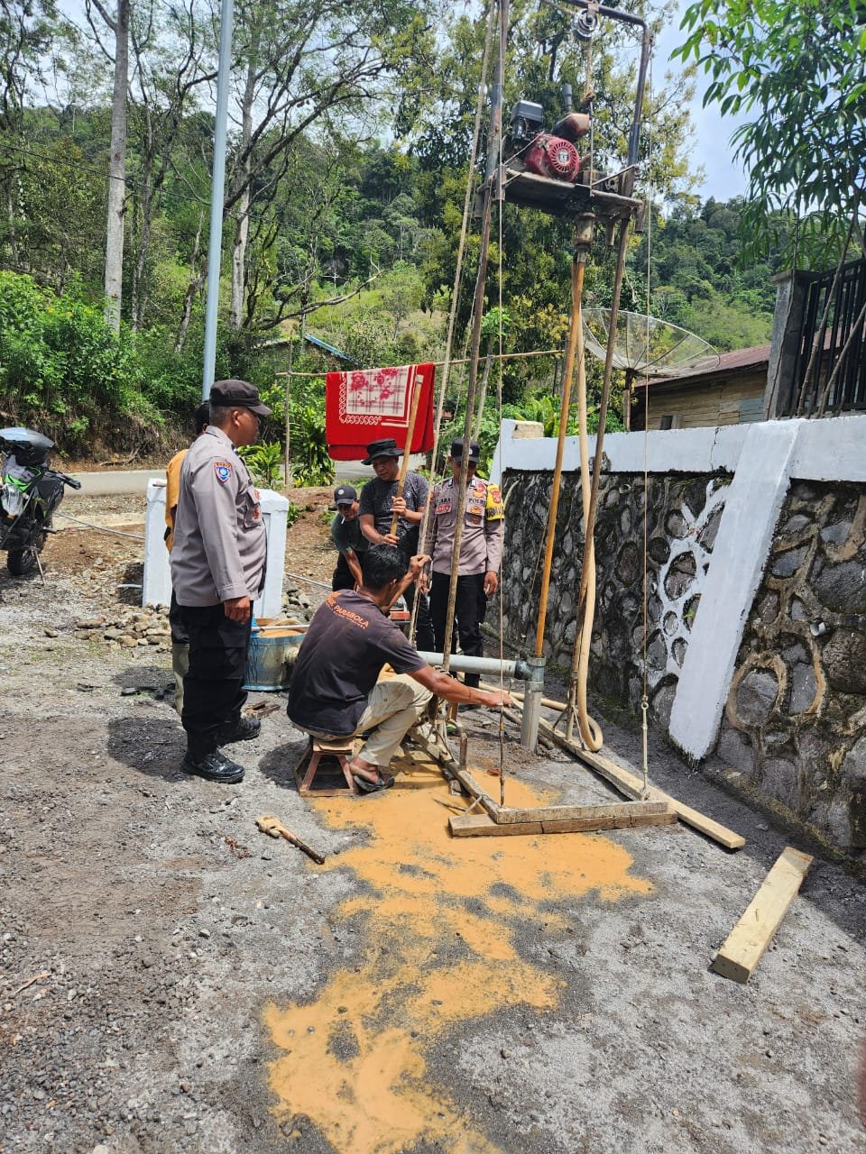 Polsek Celala Gotong Royong Meunasah dan Pembuatan Sumur Bor Bantuan Kapolres Aceh Tengah di Kuyun Uken