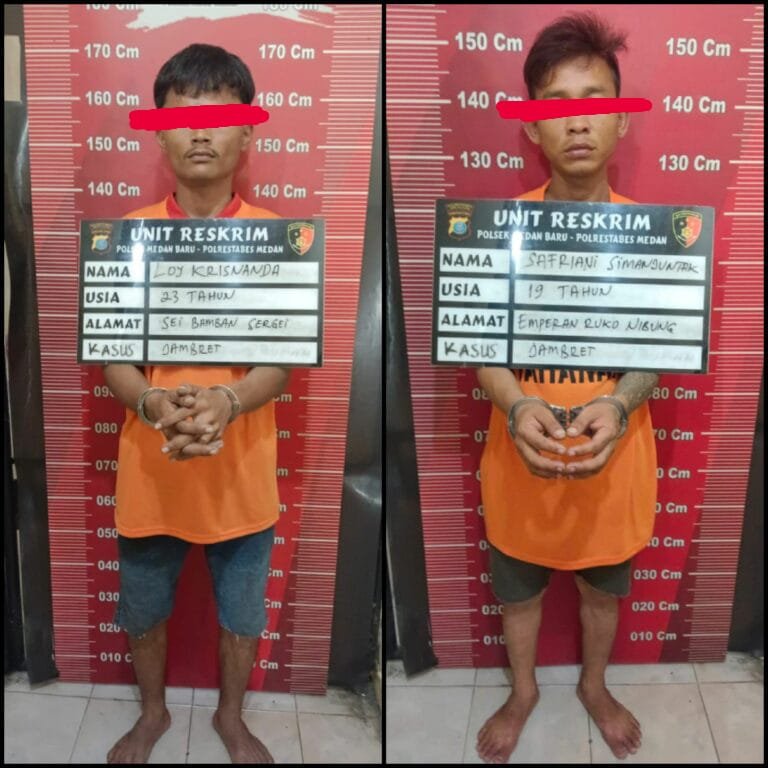 Personel Reskrim Polsek Medan Baru mengamankan 2 pelaku pencurian Handphone Jalah Gajah Mada Medan, masing-masing berinisial SS (19 tahun) warga Jalan Nibung dan LK (22 tahun) warga Jalan Pendidikan Dusun VI, Kabupaten Serdang Bedagai.