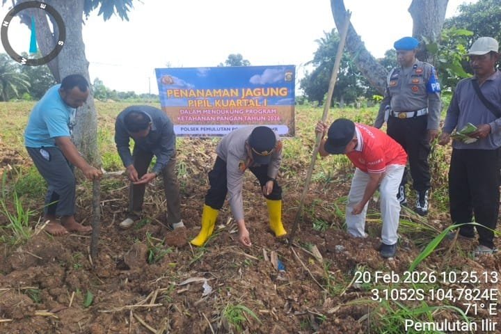 Dalam rangka mendukung program pemerintah di bidang ketahanan pangan, jajaran Polres Ogan Ilir melalui Polsek Pemulutan melaksanakan kegiatan penanaman jagung di Desa Pemulutan Ilir, Kecamatan Pemulutan, Kabupaten Ogan Ilir, pada Jumat (20/2/2026) sekitar pukul 10.00 WIB.