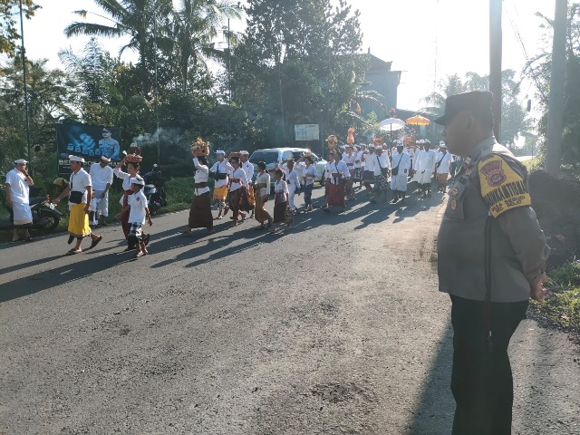 Dalam kegiatan tersebut Kapolsek Selat menurunkan sejumlah personel untuk mengamankan jalannya kegiatan, mengatur lalu lintas, serta memastikan keselamatan para pemedek (umat yang mengikuti upacara) selama prosesi berlangsung. Kehadiran aparat kepolisian memberikan rasa aman dan nyaman bagi masyarakat yang melaksanakan ritual sakral tersebut.
