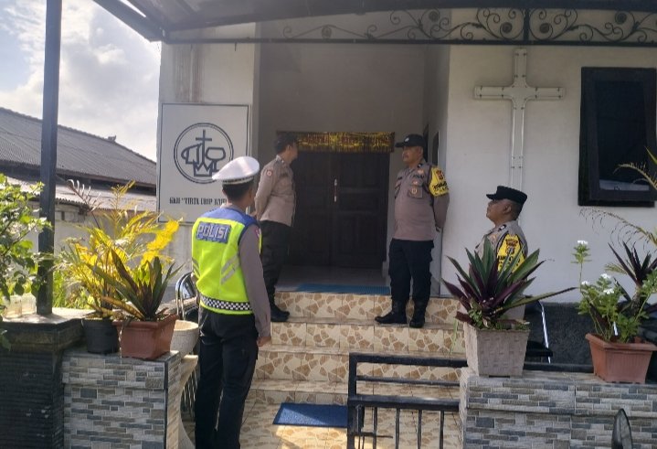 Guna menjaga situasi Kamtibmas tetap kondusif, Polsek Selemadeg Polres Tabanan yang dipimpin Kapolsek Selemadeg Kompol I Wayan Suastika,S.H., selaku KA PAM Wilayah Kec. Selemadeg bersama anggota melaksanakan pengamanan Ibadah Misa, Kenaikan Isa Al Masih di Rumah Ibadah Tirta Urip, Banjar Bajera Kaja, Desa Bajera, Kecamatan Selemadeg, Kabupaten Tabanan. Kamis, (09/05/2024). Pukul. 08:30 Wita.