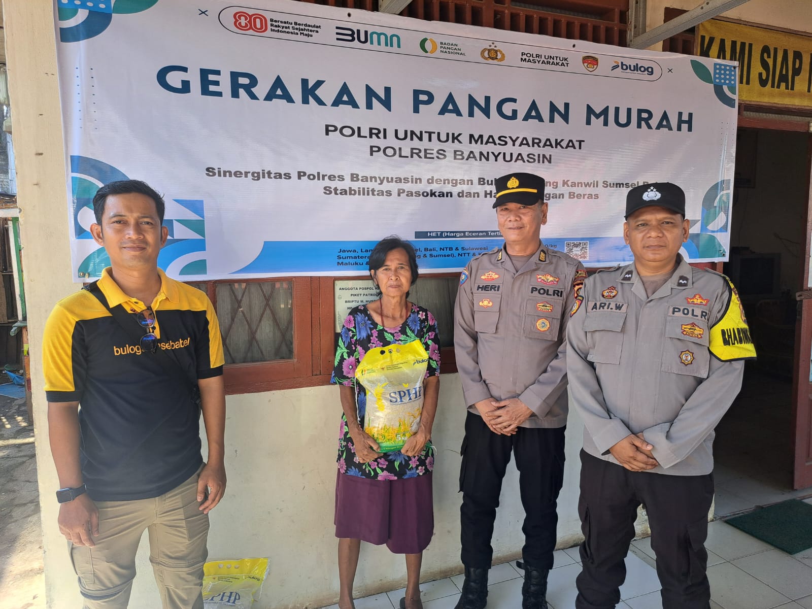 Polres Banyuasin dan Polsek Talang Kelapa bekerja sama dengan Perum Bulog Cabang Karwil Sumsel Babel menggelar Gerakan Pangan Murah (GPM) di dua lokasi, yaitu Pasar Rawa Maju dan Halaman Pos Pol Kenten, Kecamatan Talang Kelapa, Kabupaten Banyuasin, pada Jumat (19/9/2025).