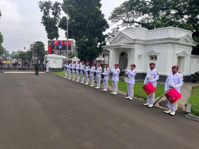 Pasmar 1. Prajurit Resimen Bantuan Tempur 1 Marinir (Menbanpur 1 Mar) melaksanakan jajar kehormatan dalam rangka menyambut kedatangan tamu Negara bertempat di Istana Bogor, Jawa Barat, Kamis (08/01/2026).Peralatan navigasi laut