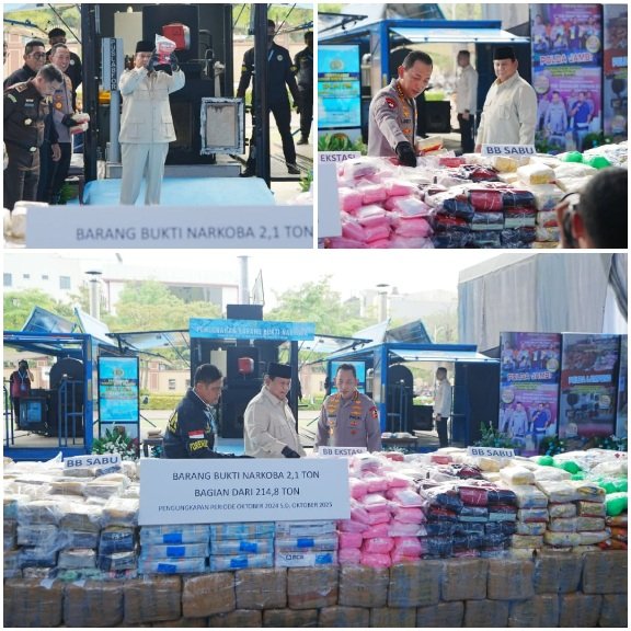 Pemusnahan barang bukti narkoba sebanyak 214,84 ton tersebut dihadiri langsung oleh Presiden Prabowo Subianto sekaligus memimpin pemusnahan barang haram tersebut di Lapangan Bhayangkara, Jakarta Selatan, pada Rabu, (29/10/2025).