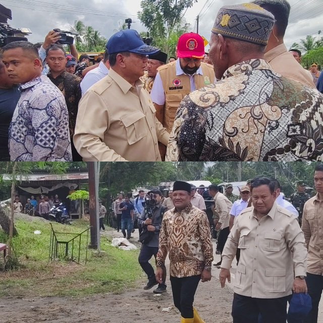 Prabowo Subianto berkunjung langsung kelokasi banjir dan temui warga terdampak di pengungsian Kabupaten Bireuen Provinsi Aceh pada Minggu (7/12/2025).