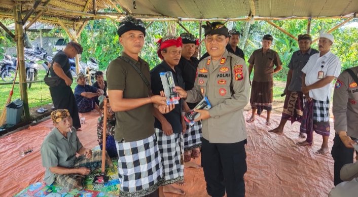 Dalam kegiatan tersebut, Kapolsek Seltim AKP I Nyoman Artadana, S.H.,M.H., menyerahkan Sarana Kontak berupa Peralatan Pertanian, Peralatan Keberhasilan, Senter, Lampu Gatur Lantas dan Paket sembako.