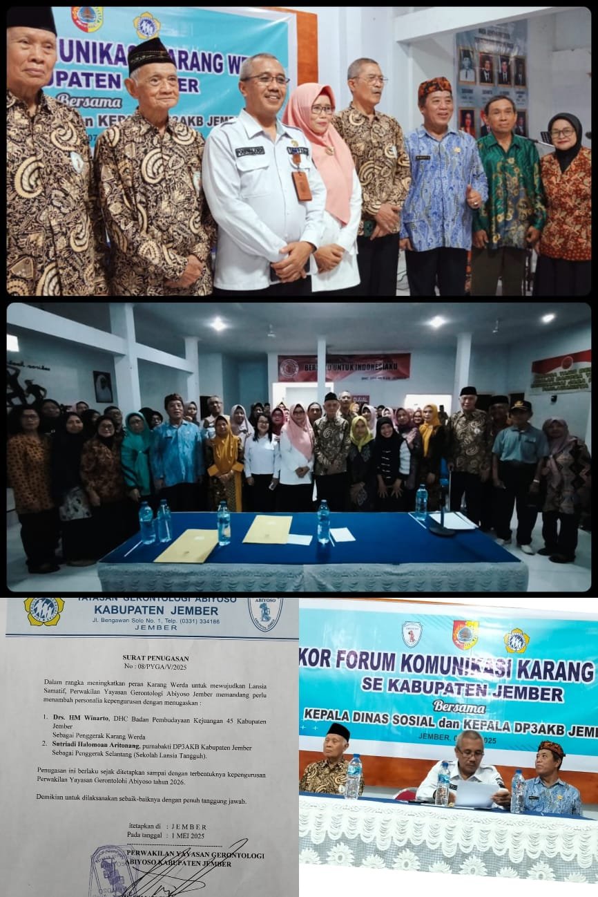 Sekretaris DP3AKB Kabupaten Jember Purwahjudi menyambut baik usaha Perwakilan Yayasan Gerontologi Abiyoso untuk menjadikan lansia tangguh melalui Selantang. Melalui Selantang kata Pak Pur, diharapkan para lansia terus dan produktif.