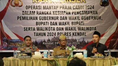 KENDAL – Polres Kendal menggelar rapat koordinasi lintas sektoral dalam rangka kesiapan pengamanan Operasi Mantap Praja Candi tahun 2024-2025. Kegiatan ini dilaksanakan untuk mengamankan Pemilihan Gubernur dan Wakil Gubernur, Bupati dan Wakil Bupati, serta Walikota dan Wakil Walikota yang akan berlangsung pada tahun 2024. Rapat tersebut diselenggarakan di salah satu obyek wisata di Kabupaten Kendal pada Senin, 19 Agustus 2024.