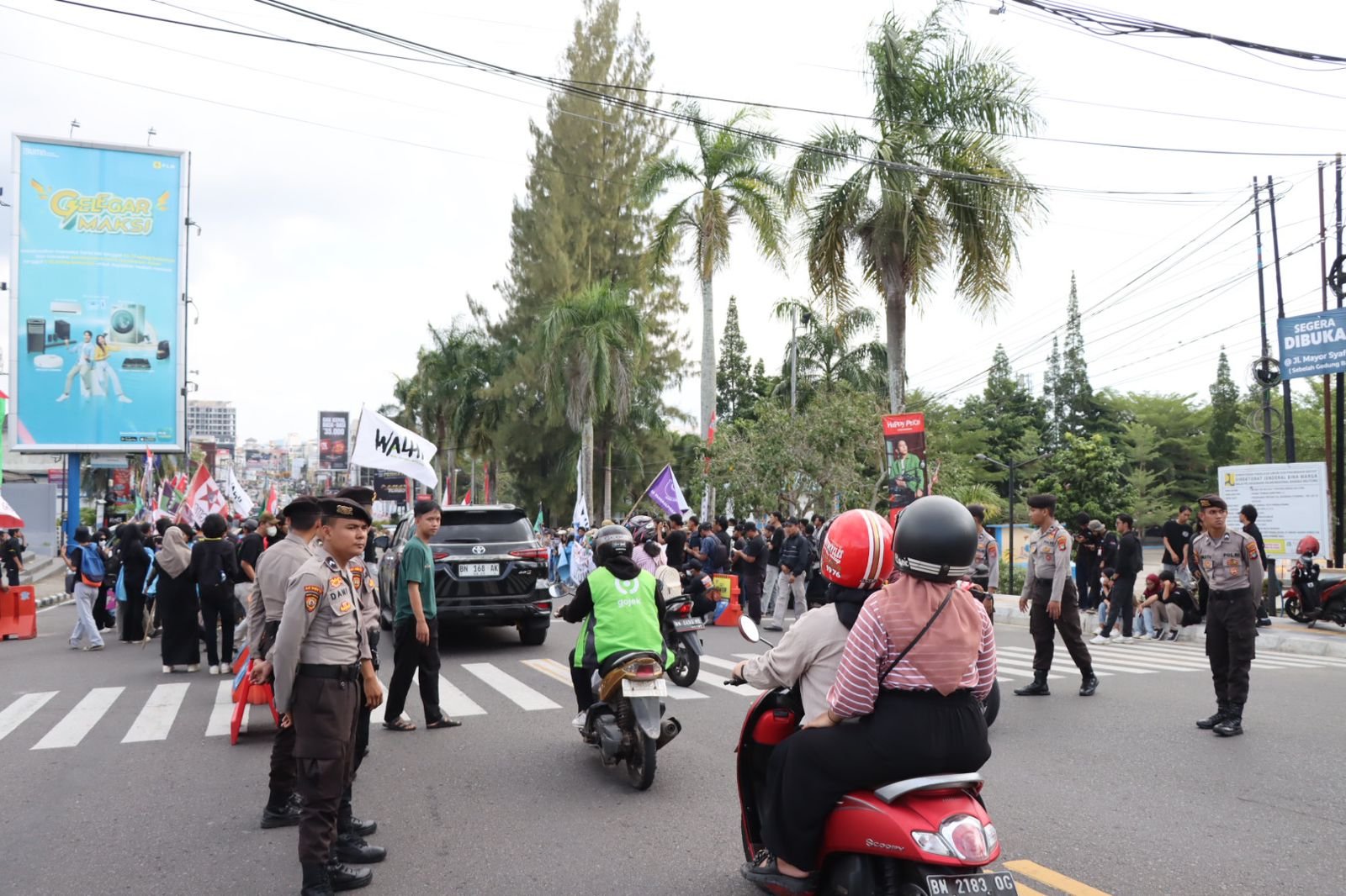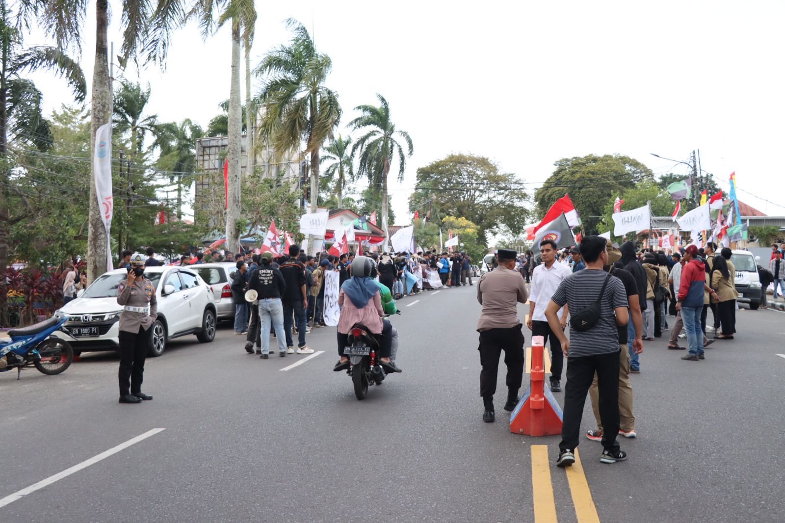 “Termasuk personel lalu lintas, dikerahkan untuk mengatur arus lalu lintas sehingga masyarakat lainnya yang melintasi jalur aksi ini bisa dengan aman dan nyaman,”ungkapnya.