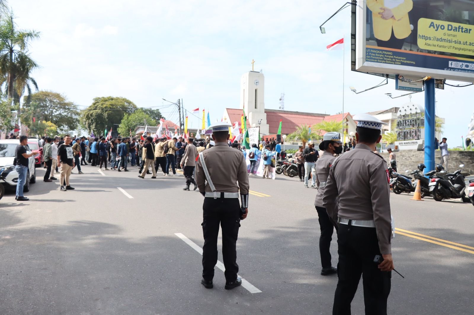 Ratusan Personel Polresta Pangkalpinang Amankan Aksi Kawal Putusan MK Di Titik Nol Kilometer Pangkalpinang