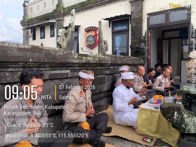 Kegiatan yang berlangsung khidmat ini dipimpin langsung oleh Kapolsek Bebandem, AKP I Gusti Ngurah Bagus Suastawan, S.H., M.H., didampingi Wakapolsek IPTU I Wayan Budiyasa, serta diikuti oleh jajaran personel Polsek Bebandem yang beragama Hindu.