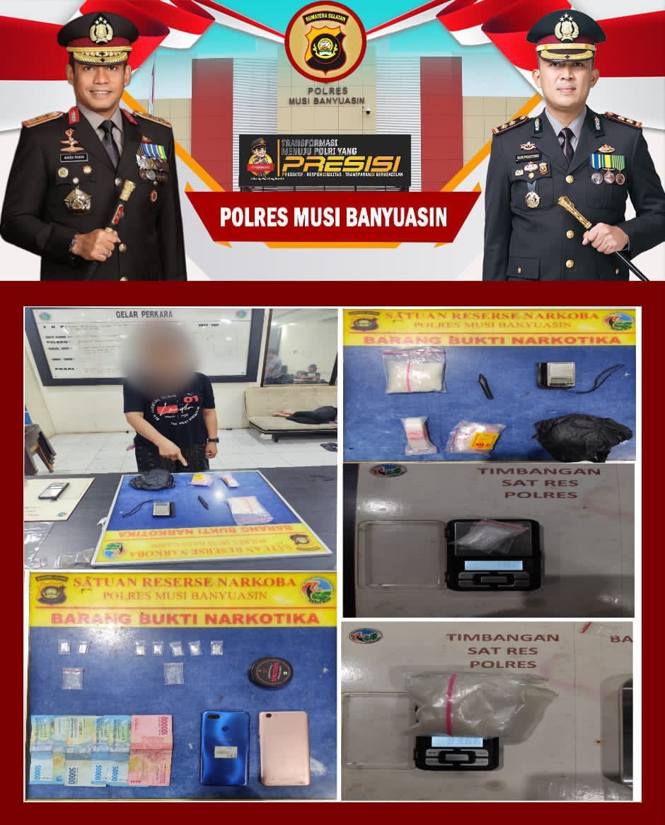 Satuan Reserse Narkoba Polres Musi Banyuasin kembali berhasil mengungkap peredaran gelap narkotika. Dalam dua operasi terpisah pada Senin, (5/1/2026), petugas mengamankan dua terduga pengedar berikut barang bukti sabu dengan total berat bruto sekitar 94,63 gram.