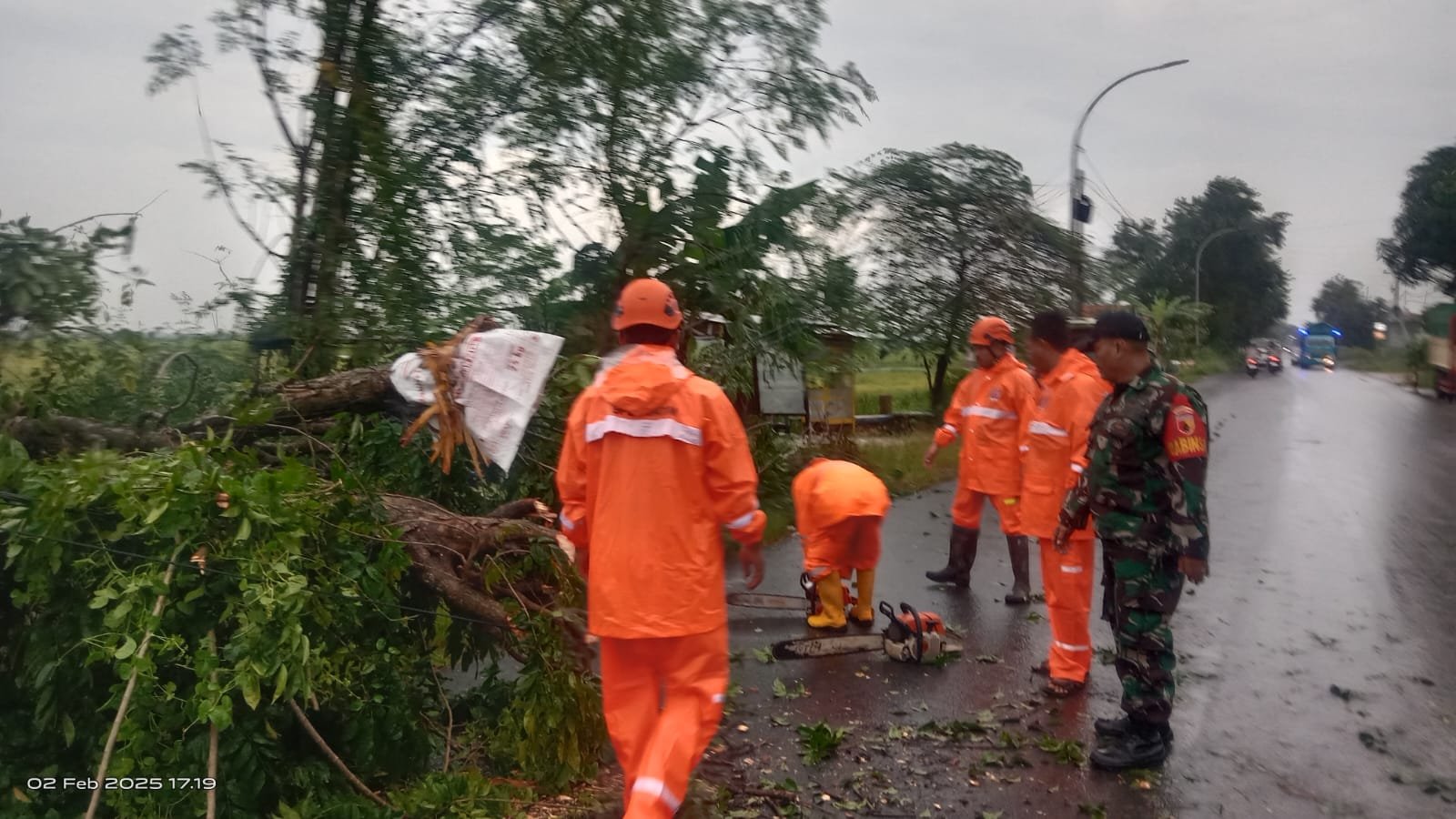 Gresik |Jatim | Hujan deras yang disertai angin kencang mengakibatkan sebuah pohon tumbang dan hampir menutup akses jalan raya di wilayah Desa Pundut Trate, Kecamatan Benjeng sehingga dapat menggangu aktivitas masyarakat pengguna jalan. Minggu (2/2/2025) sore.