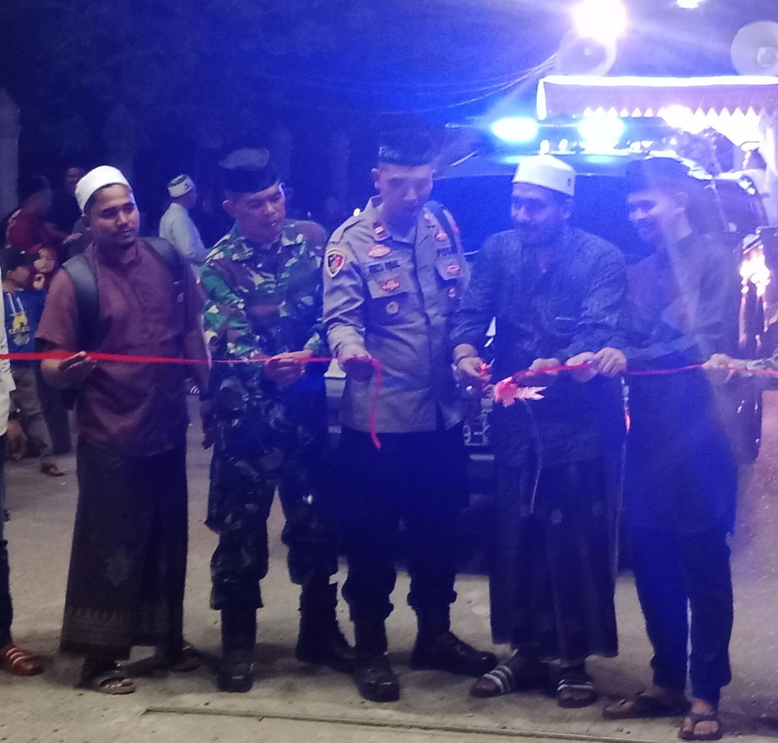 Kapolsek Syamtalira Bayu Iptu Sirya Iqbal dan Imum syik memotong tali pelepasan takbir keliling dari beberapa desa diseputaran Syamtalira Bayu.