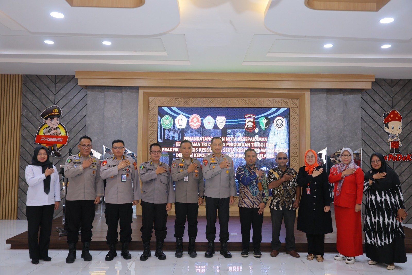 Kegiatan yang dimulai pukul 13.30 WIB tersebut dihadiri oleh Pejabat Utama Polda Sumsel dan pimpinan dari kelima lembaga pendidikan yang menjadi mitra kerja sama, yaitu Universitas Respati Indonesia, Universitas Sanz Magnatya, Universitas Aisyiyah Palembang, STIKes Dona Palembang, serta SMK Negeri 1 Suak Tapeh.