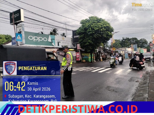 Dalam upaya menjaga keamanan dan kelancaran arus lalu lintas di BTN Taman Asri, personil satuan Lalu Lintas Polres Karangasem yang sudah disprinkan bertugas gatur pagi, tetap dengan semangat dan ikhlas serta berbekal rasa tanggungjawab tinggi melaksanakan tugas pemantauan, pengaturan dan penjagaan arus lalu lintas serta dapat membantu menyeberangkan masyarakat pengguna jalan yang melintas di seputaran terutama pada jam – jam padat arus lalu lintas di pagi hari pada jalan masuk Simpang 3 BTN Taman Asri Amlapura. Pada hari Rabu, 29 April 2026 sekira pukul 06.30 Wita.