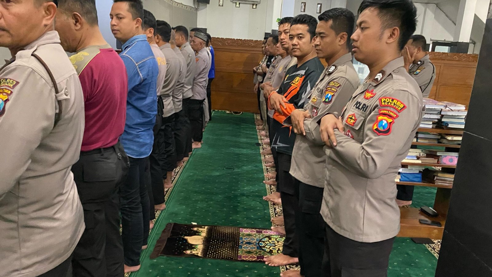 Nganjuk – Jatim | Polres Nganjuk melaksanakan shalat gaib dan doa bersama untuk para korban bencana alam banjir di Provinsi Aceh, Sumatera Utara, Sumatera Barat, serta korban erupsi Gunung Semeru di Jawa Timur yang dipusatkan di Masjid Al-Ikhlas Polres Nganjuk, Jumat (5/12/2025).