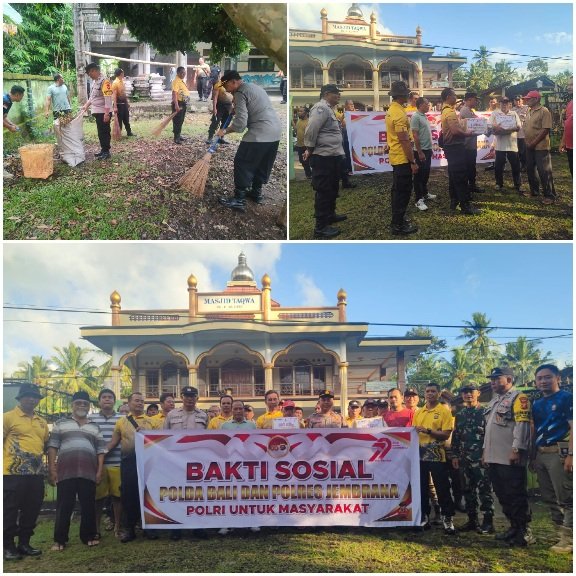 Menjelang peringatan Hari Bhayangkara ke-79, jajaran Polsek Pekutatan melaksanakan kegiatan bakti religi dan sosial di Masjid Taqwa, Desa Pekutatan, Kecamatan Pekutatan, Kabupaten Jembrana, Bali, Jum’at (13/6/2025) pagi.