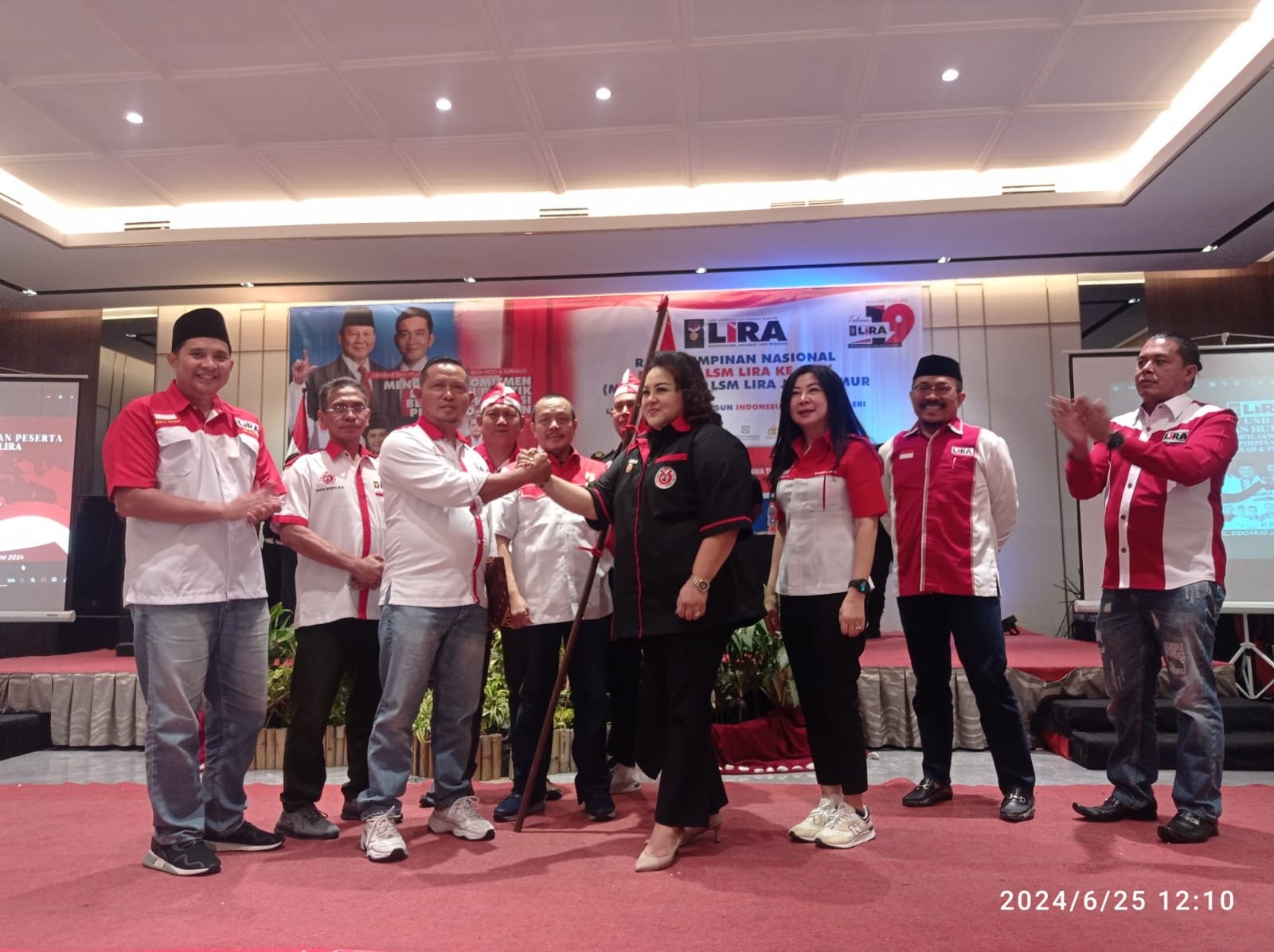 Sementara itu, Presiden LSM LIRA, HM. Jusuf Rizal menyerahkan secara simbolis Pataka LSM LIRA kepada Gubernur LSM LIRA yang baru Samsudin, untuk dikibarkan di seluruh propinsi Jawa Timur.