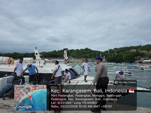 Personel Satuan Polisi Perairan dan Udara (Sat Polairud) Polres Karangasem, Brigadir Edi Sukawan, S.H., melaksanakan kegiatan harkamtibmas melalui pengamanan dan pengawasan aktivitas masyarakat di Dermaga Rakyat Padangbai, Kecamatan Manggis, Kabupaten Karangasem. Pada Rabu, (25/2/2026) pukul 08.00 hingga 11.00 Wita,