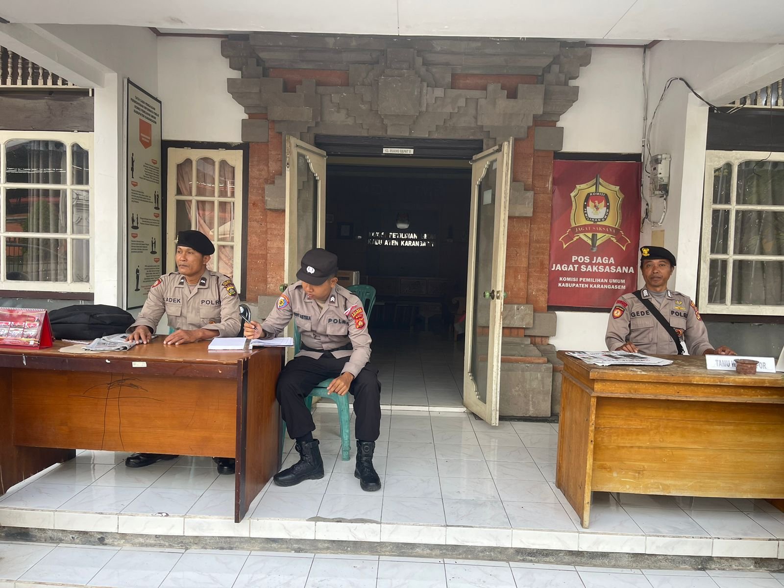 Satgas Preventif Polres Karangasem, di bawah pimpinan Kasubsatgas Pam Penyelenggara Pilkada IPTU I Made Budiarta, melaksanakan pengamanan, patroli, himbauan, dan pengawasan di Kantor Komisi Pemilihan Umum (KPU) Kabupaten Karangasem pada Minggu (8/9/2024). Kegiatan ini merupakan bagian dari Operasi Mantap Praja Agung 2024, khususnya pada Tahap Penelitian Persyaratan, Penetapan dan Pengundian Nomor Urut Pasangan Calon Bupati Wakil Bupati Kabupaten Karangasem tahun 2024.