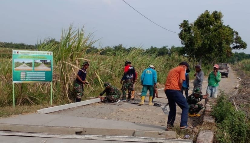 Satgas TMMD 121 Mojokerto, Mulai Garap Rabat Beton Jalan Lingkungan Dusun Bandung Wetan