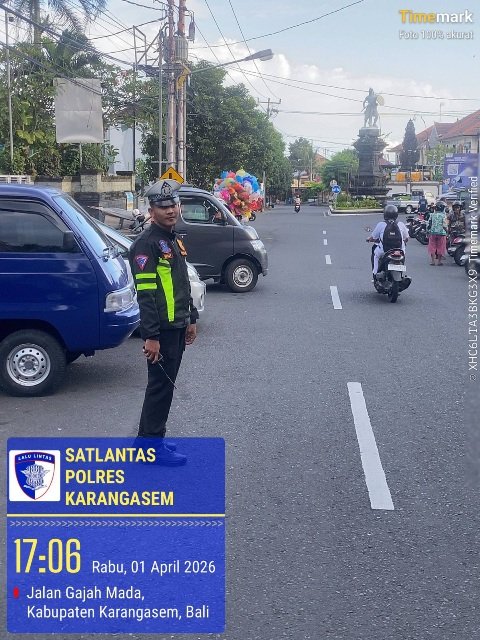 Satlantas Polres Karangasem Atensi Pos Sore dan Gatur Lalin, di Pasar Senggol Jalan Gajah Mada Amlapura