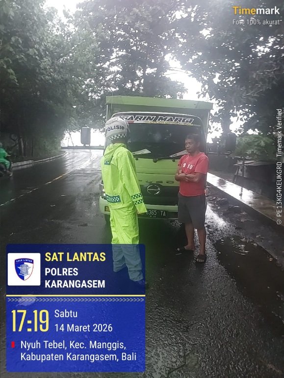 Dalam upaya menjaga ketertiban dan keamanan lalu lintas, Satuan Lalulintas Polres Karangasem Unit Regident melaksanakan patroli dan himbauan terhadap sopir truk Pada hari ini Sabtu, 14 Maret 2026.