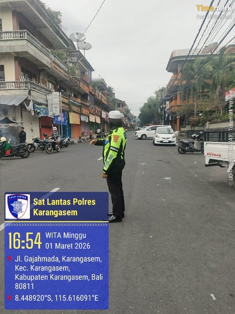Dalam upaya menekan tingkat Laka-lantas, Satuan Lalulintas Polres Karangasem memberikan trobosan kreatif dengan melaksanakan pengaturan dan penjagaan pada sore hari sehingga masyarakat lebih tertib dalam berlalulintas. Pada Minggu, (1/3/2026).