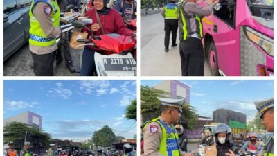 Berbeda dengan penindakan hukum yang kaku, petugas kali ini mengedepankan pendekatan humanis. Selain memberikan edukasi mengenai pentingnya mematuhi rambu-rambu lalu lintas, petugas juga membagikan brosur, stiker, hingga bingkisan menarik bagi pengendara yang tertib.