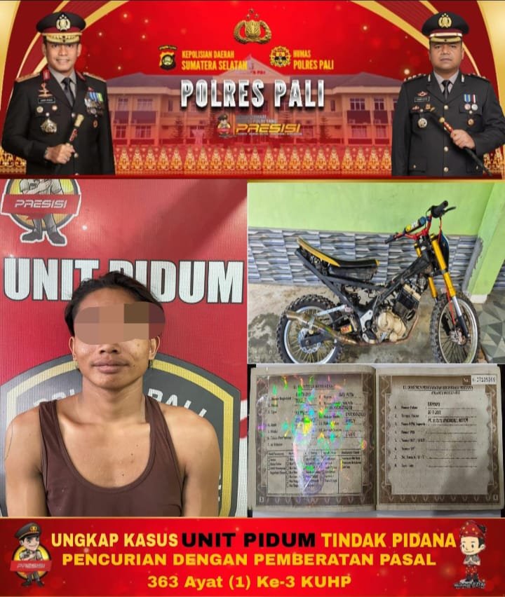 Satuan Reserse Kriminal Polres PALI berhasil membekuk seorang pria berinisial FN (20) tahun, usai mencuri motor milik Muhammad Akbar warga kelurahan Talang Ubi Utara, kecamatan Talang Ubi kabupaten PALI pada Kamis 17 April 2025 kemarin.