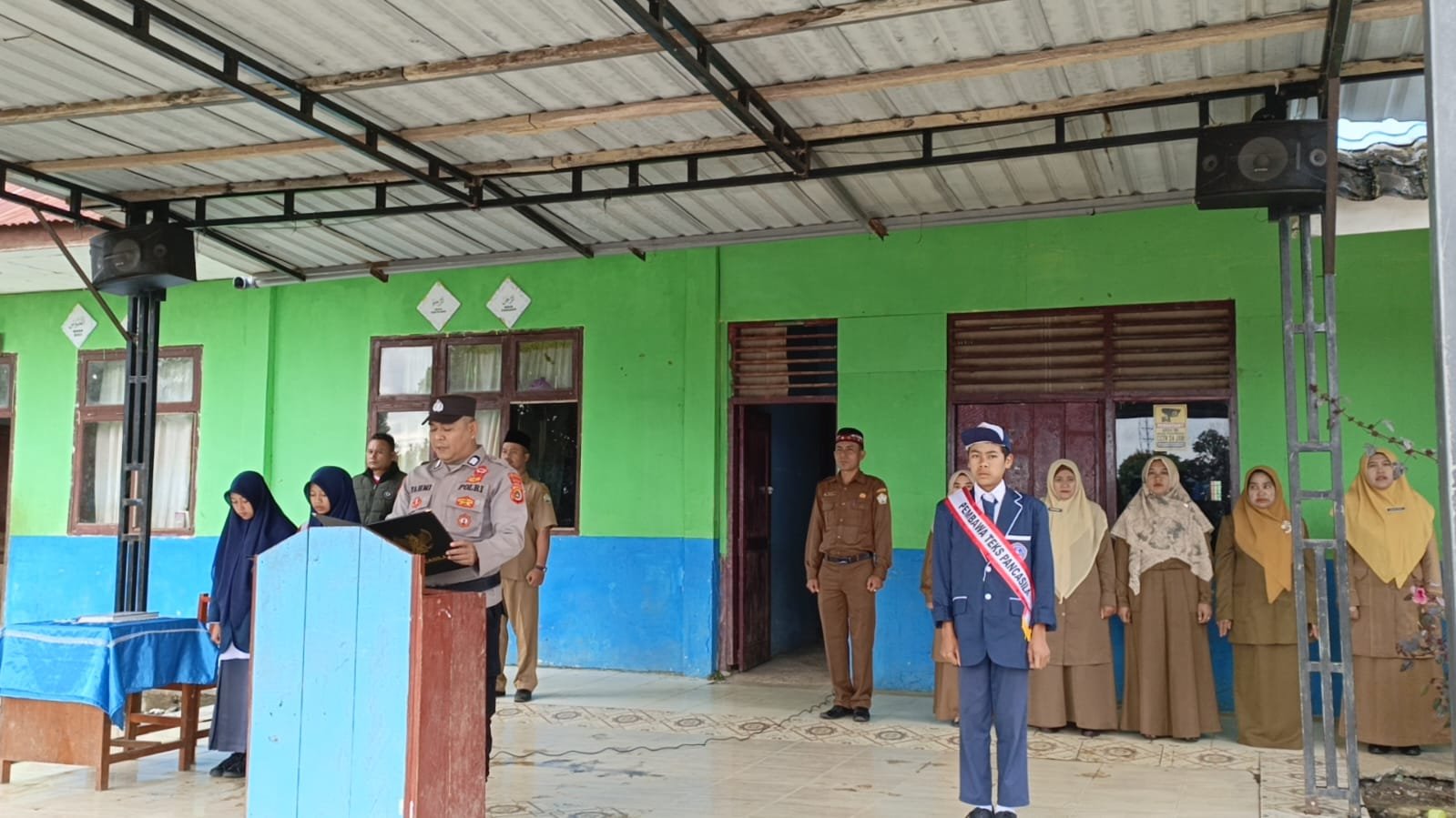 Turut hadir Kanit Intelkam, Bhabinkamtibmas Polsek Jagong Jeget, Kepala Sekolah SMP Negeri 16 Takengon, serta para guru dan pelajar yang dengan penuh antusias mengikuti kegiatan hingga selesai.