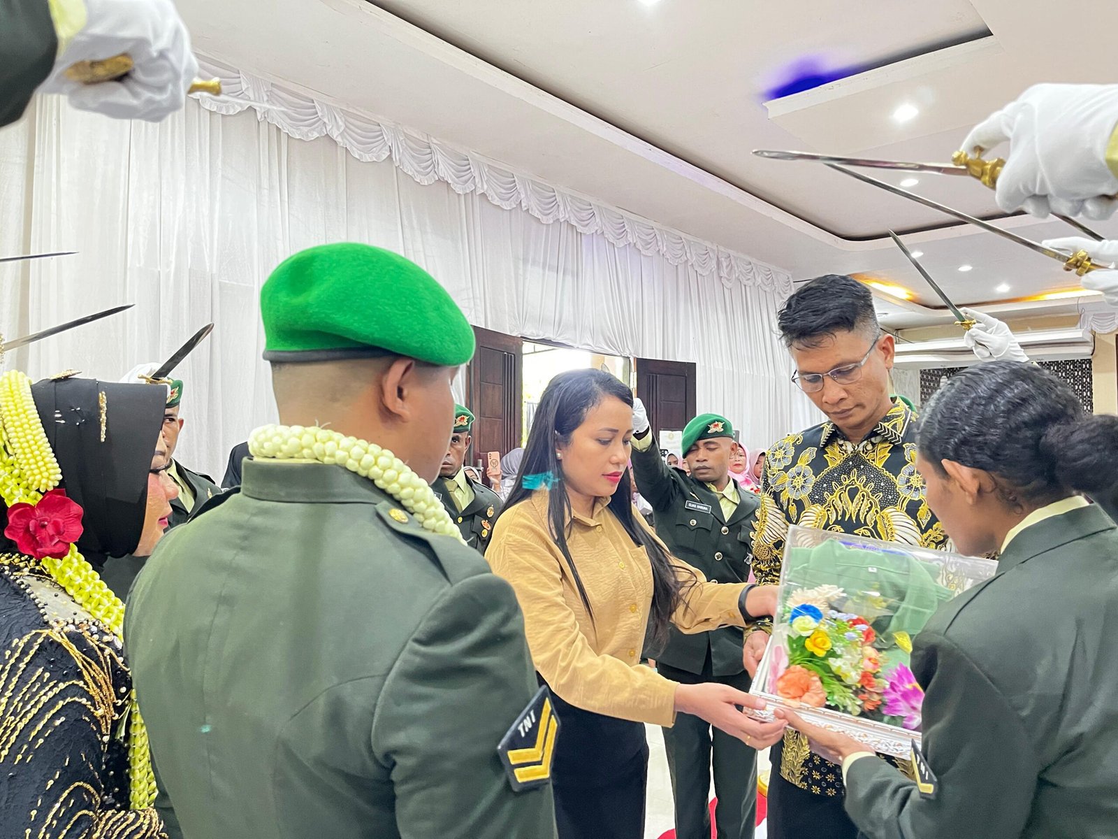 Dalam kesempatan tersebut, Dandim 1806/TB bersama istrinya memberikan cenderamata berupa Seragam Persit kepada mempelai wanita. Pemberian ini merupakan wujud perhatian dan dukungan resmi atas bergabungnya Dewina Cindy Pratiwi sebagai anggota Persit Kartika Chandra Kirana (KCK) Cabang XLIV Kodim 1806/TB. Acara kemudian ditutup dengan sesi foto bersama antara Dandim, istrinya, dan kedua mempelai untuk mengabadikan momen kebersamaan tersebut.